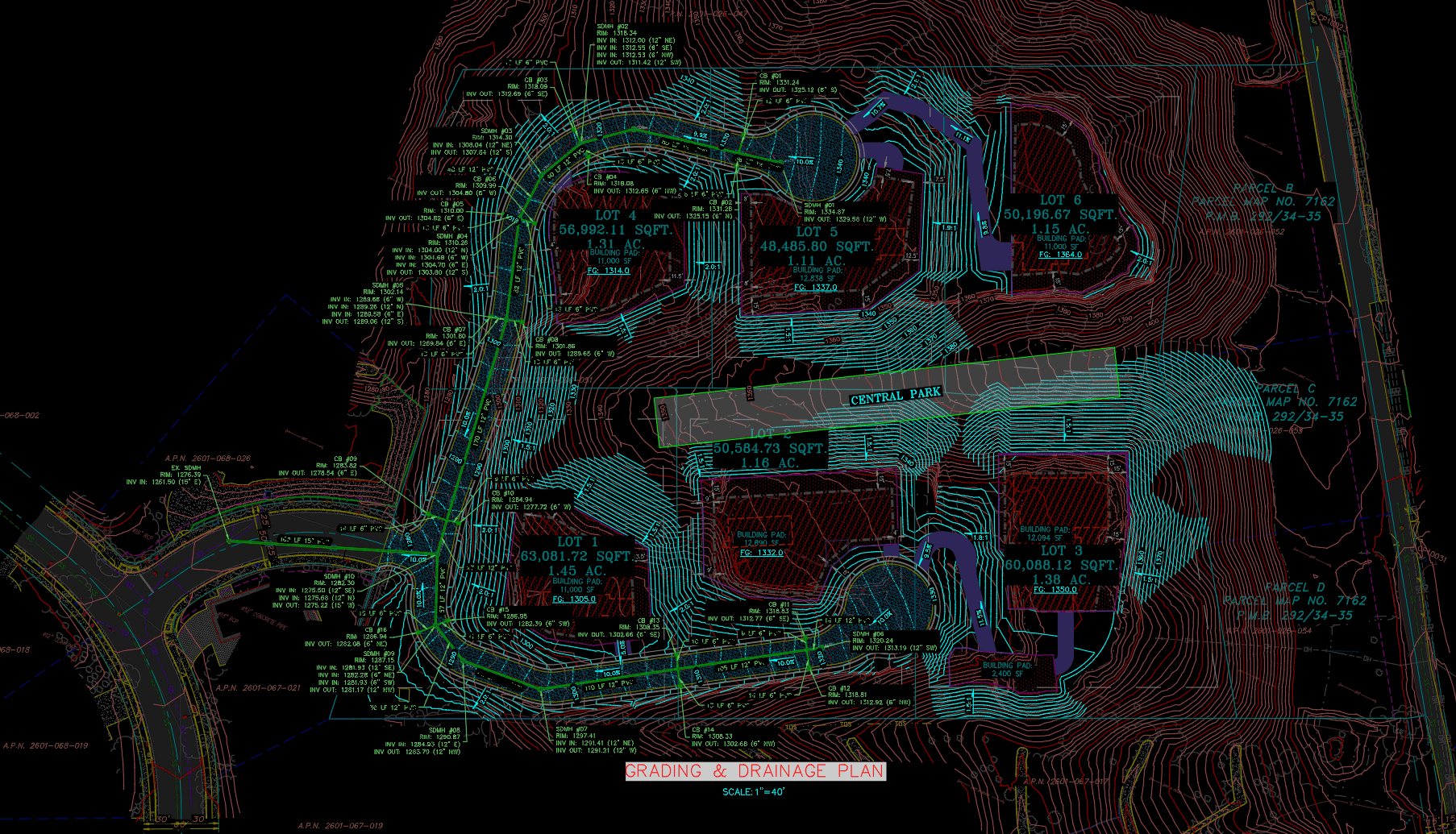 2. Grading Design: Developed a grading design that accounted for the unique terrain ensuring proper drainage and land stability.